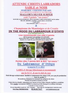 16 janvier 202016 janvier 2020A placéIn Actualités, Elevage, PortéeOscar du labramour d ‘othys 20 mois male sable à placé renseignement par téléphone 03.44.43.74.47