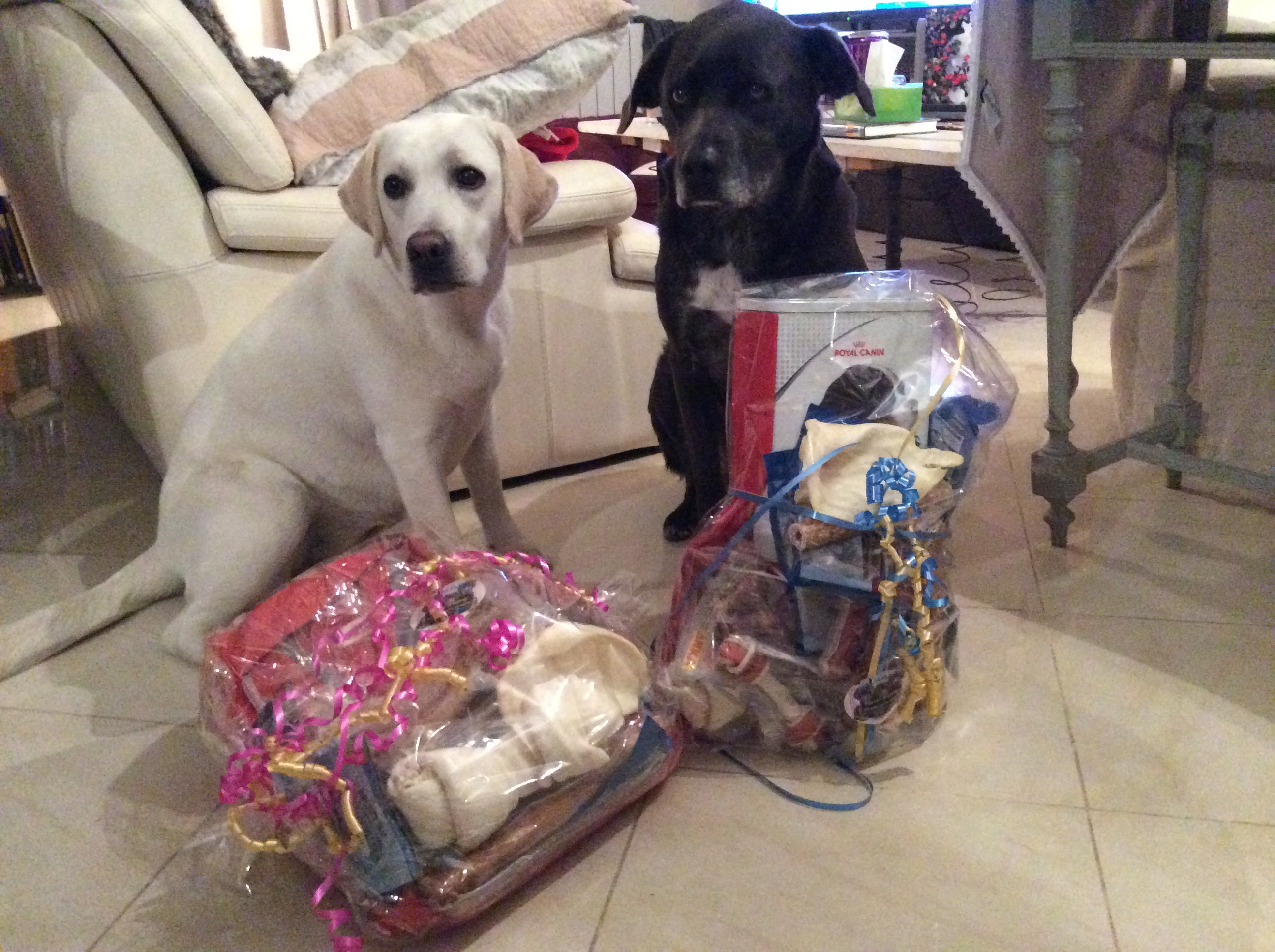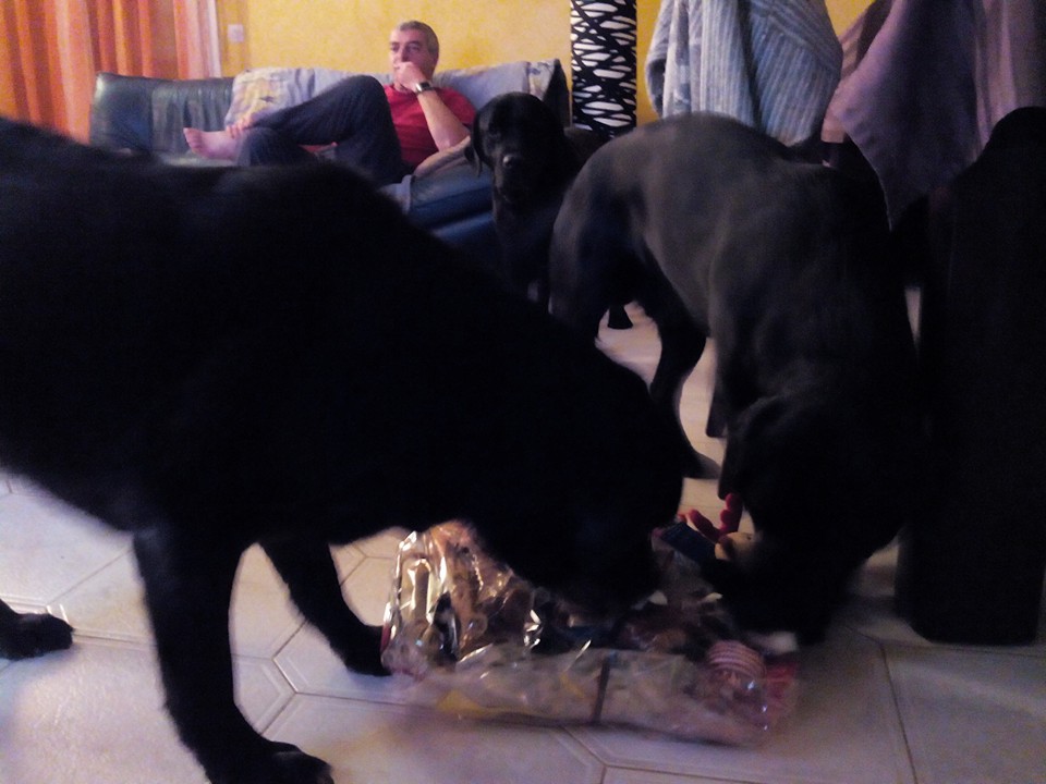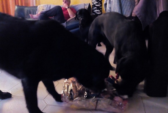 voila nos petit amis à 4 pattes et leurs colis de Noel