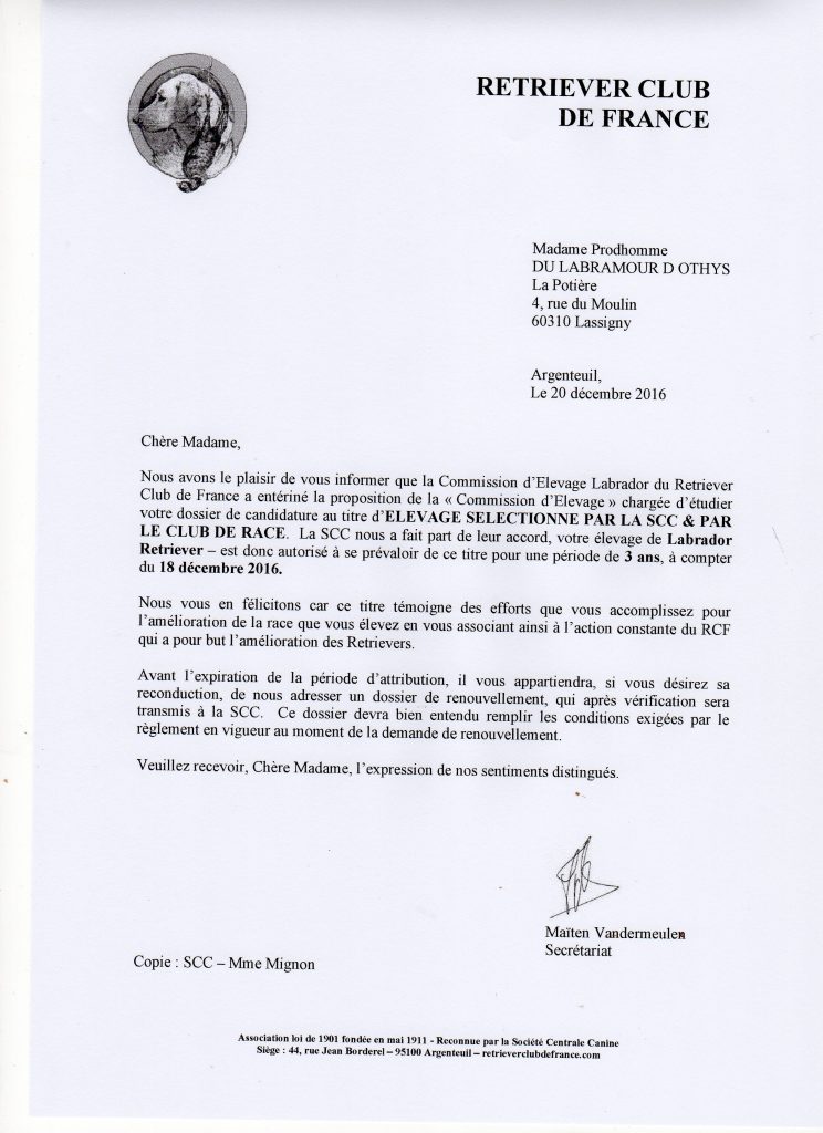 20 décembre 201620 décembre 2016une excellent nouvelle en ce 20 décembre 2016In Actualités, Elevage Une excellent nouvelle se matin dans ma boite mail merci au RCF et à la SCC de leur confiance en nous très fière de nous ,de nos labramours d’othys et de tous nos familles Nathalie Alain